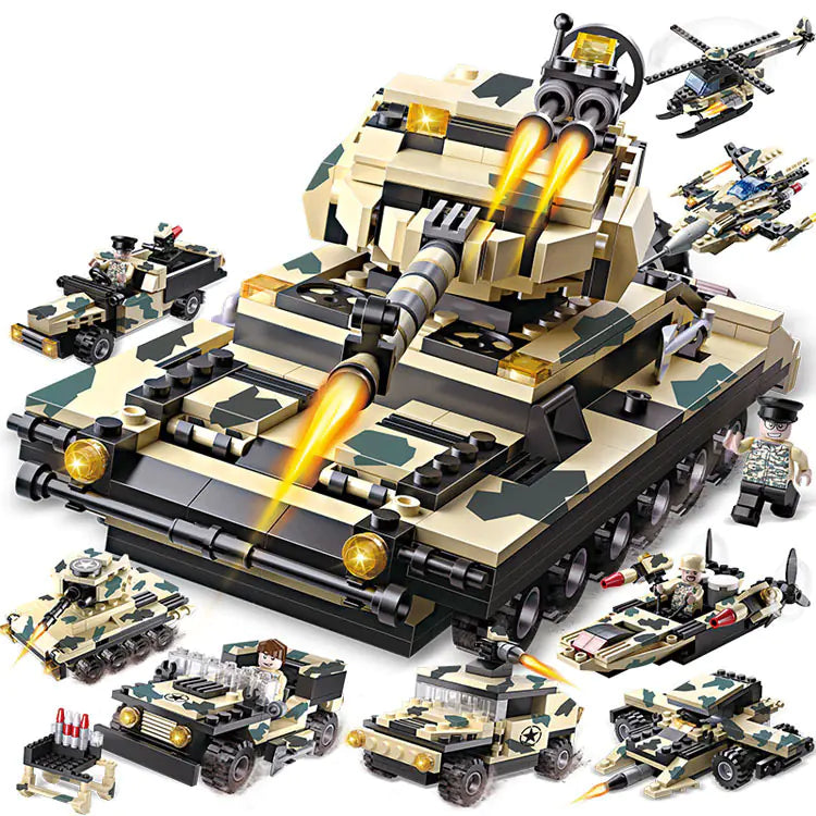Unleash your child's imagination with our 8-in-1 Military Tank Building Block Set. Designed for young builders aged 6 and up, this engaging educational toy consists of an impressive 834 blocks, ensuring hours of creative fun.